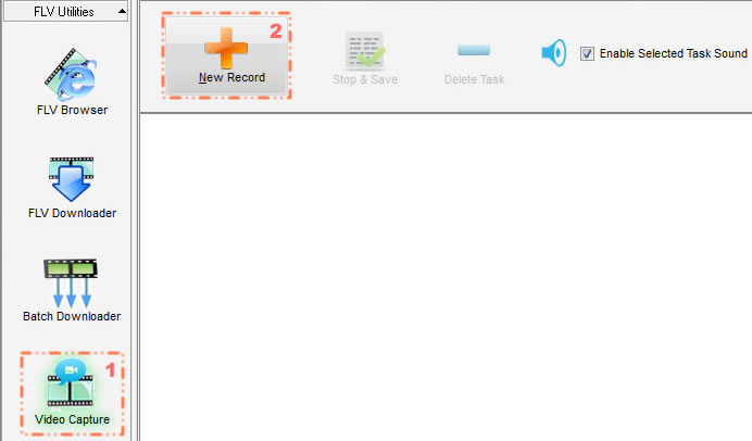 1. Switch to "Video Capture" window and click "New Record" button to start a new capture task. |